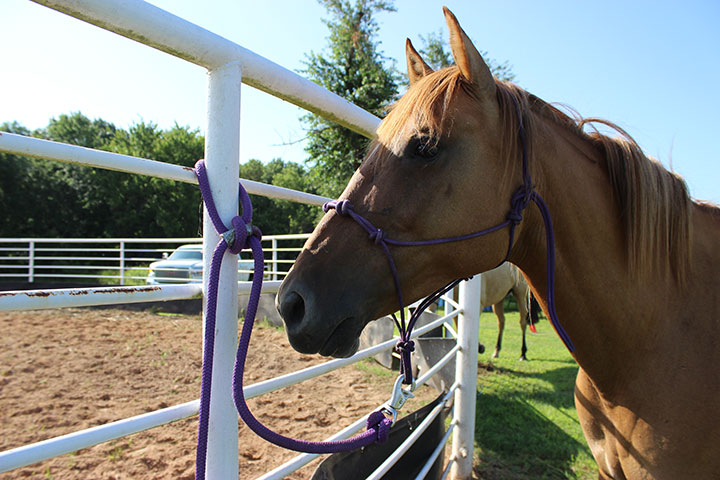 If you don’t have either of those tools at your disposal, you can tie your horse up using a Bowline knot. It’s my favorite knot because the horse can’t untie himself, yet if he does pull back, it’s relatively easy to undo the knot because it doesn’t tighten up on itself.