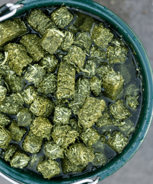 Soaked cubes, pellets, or beet pulp are excellent hydration tools.