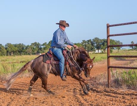 When we get to the next rollback fence, we put the horse’s feet to work, rolling him back into the fence. We repeat the exact same thing we did at the first fence— we keep the horse’s feet moving for five to 10 minutes and then put him on a loose rein and walk down the trail again. It usually takes until the third or fourth rollback fence for the horse to finally realize that there’s no point in rushing down the trail because he’s only hurrying to hard work and sweat. It’s like something just clicks in his brain and he starts walking more slowly and his mind stops racing a million miles a minute. Make no mistake about it; it takes a lot of energy and air for a horse to practice rollbacks for five or 10 minutes. While the horse might think it’s fun to speed walk down the trail or jig, when he has to move his feet under your direction, it loses all its fun.