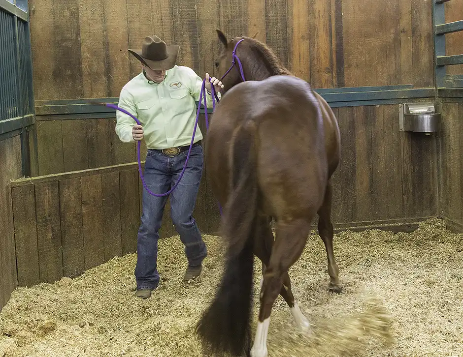 When we get a hot-blooded, busy-minded horse with a severe problem in the Academy Horse Program, we spend several training sessions riding the horse from one rollback fence to another. We start the training session as we do every training session—by practicing at least half an hour of groundwork to ensure the horses are using the thinking side of their brains and are tuned in to us. Then we get in the saddle and spend a few minutes flexing them at the standstill. Then we spend some more time bending them around in a circle and softening their bodies.