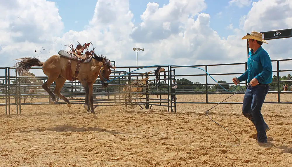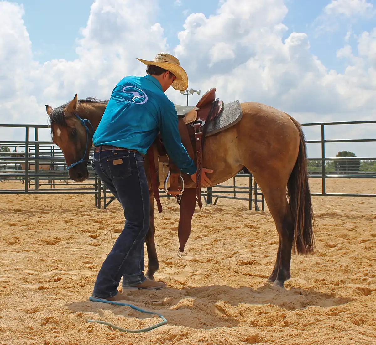 This year’s Colt Starting Clinic provided a great reminder about how important it is to properly adjust the back cinch. When I saddle a horse for the first time, he’s allowed to buck as much and as hard as he wants. He can do whatever he wants to try to get that saddle off his back. I do this because I want him to realize that no matter how hard he bucks, the saddle isn’t going anywhere; it’s staying right on his back.