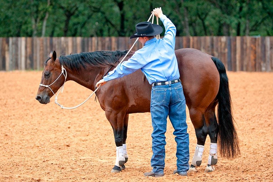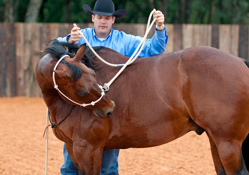 Your goal is for the horse to continually put in more effort and for you to put in less effort. So when you first pick up on the lead rope, don’t pull his head more than   of the way around. It’s his responsibility to give the last.