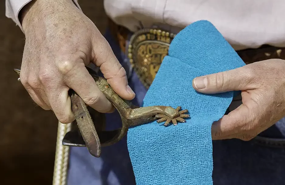 1. It’s smart to introduce spurs to your horse on the ground before strapping a pair on your boots and climbing up into the saddle. You can never be sure how a horse is going to react to spurs the first time he feels them, even if he’s on the cold-blooded side of the scale. Letting the horse get used to the feel of the spurs while you’re on the ground keeps both of you in a safe position.