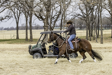 Then, before you get back in the saddle, doublecheck his “go” button by practicing some Lunging for Respect Stage Two. As soon as you point with your hand to tell the horse to move, he should hustle his feet out onto the circle. If he doesn’t, use the end of your mecate to make him feel uncomfortable for ignoring you. A good rule of thumb to remember is if your horse has an attitude about moving forward when you work with him on the ground, or he’s lazy, his response is only going to get worse under saddle.