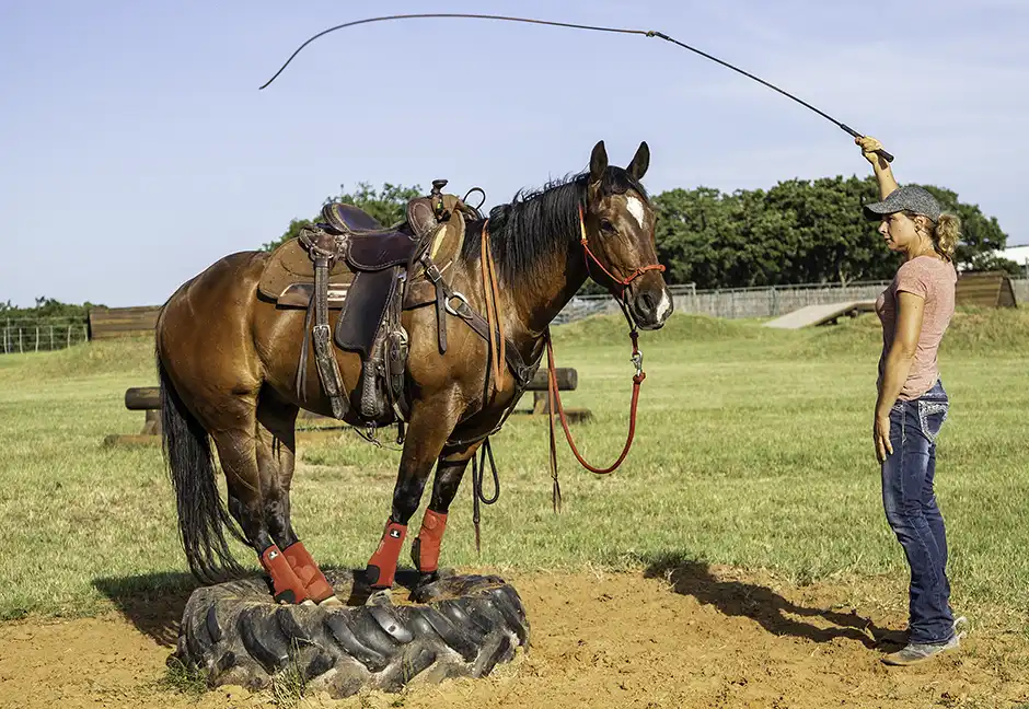Like with anything you do with a horse, when you start working on obstacles, you begin with the easiest obstacles first and then progress to more challenging obstacles. This way, you build the horse’s confidence and set him up for success.