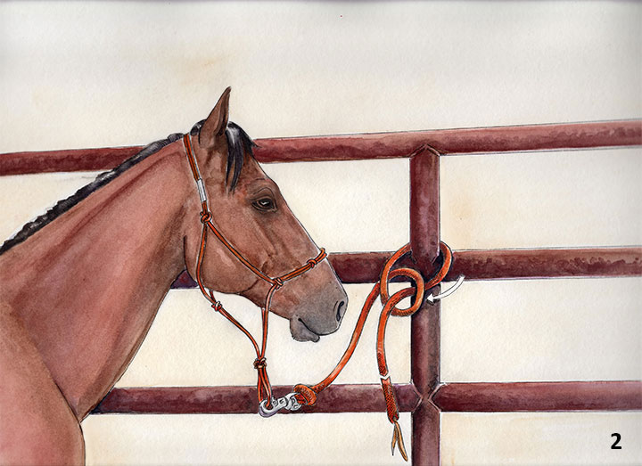 Then pass the free end under the line attached to the horse.